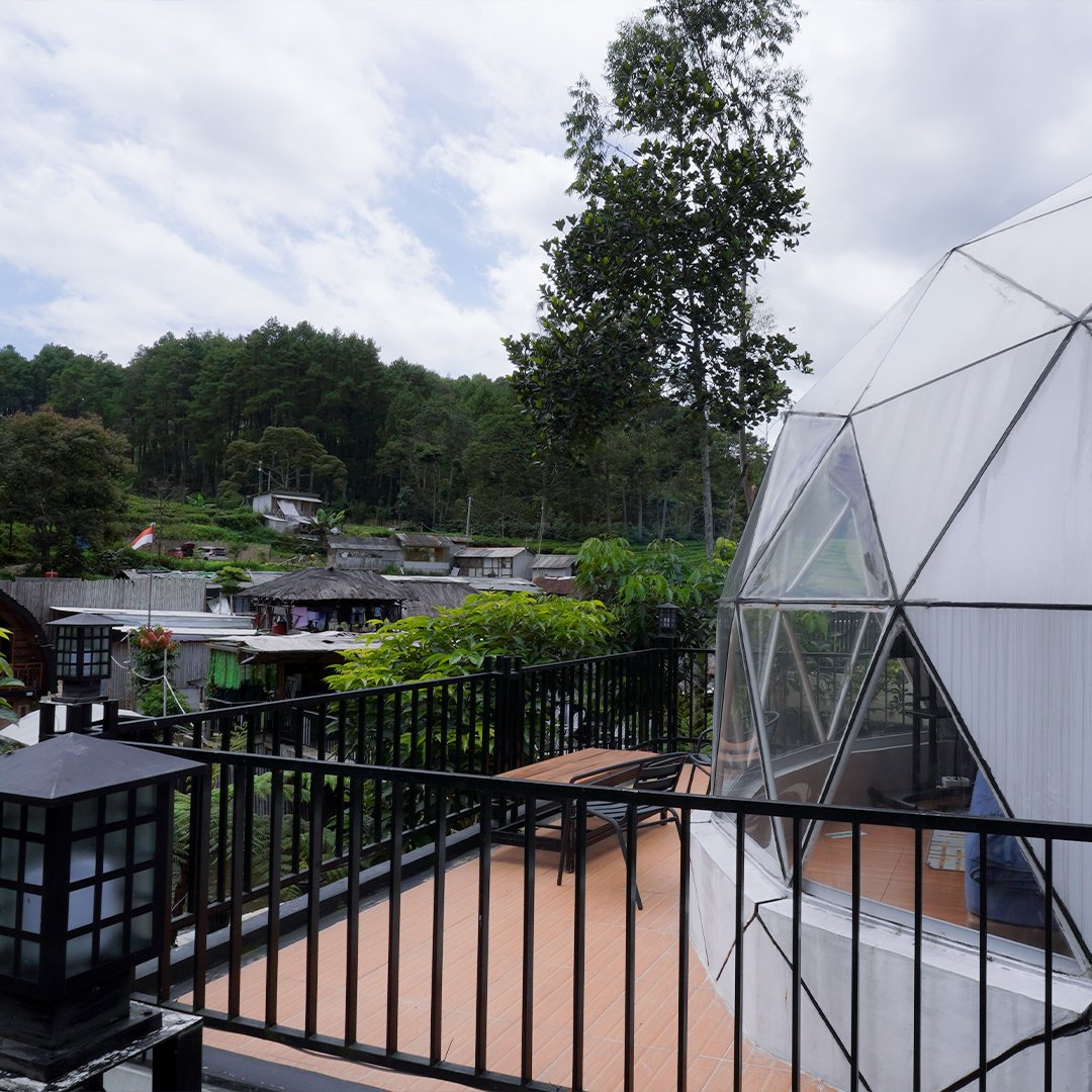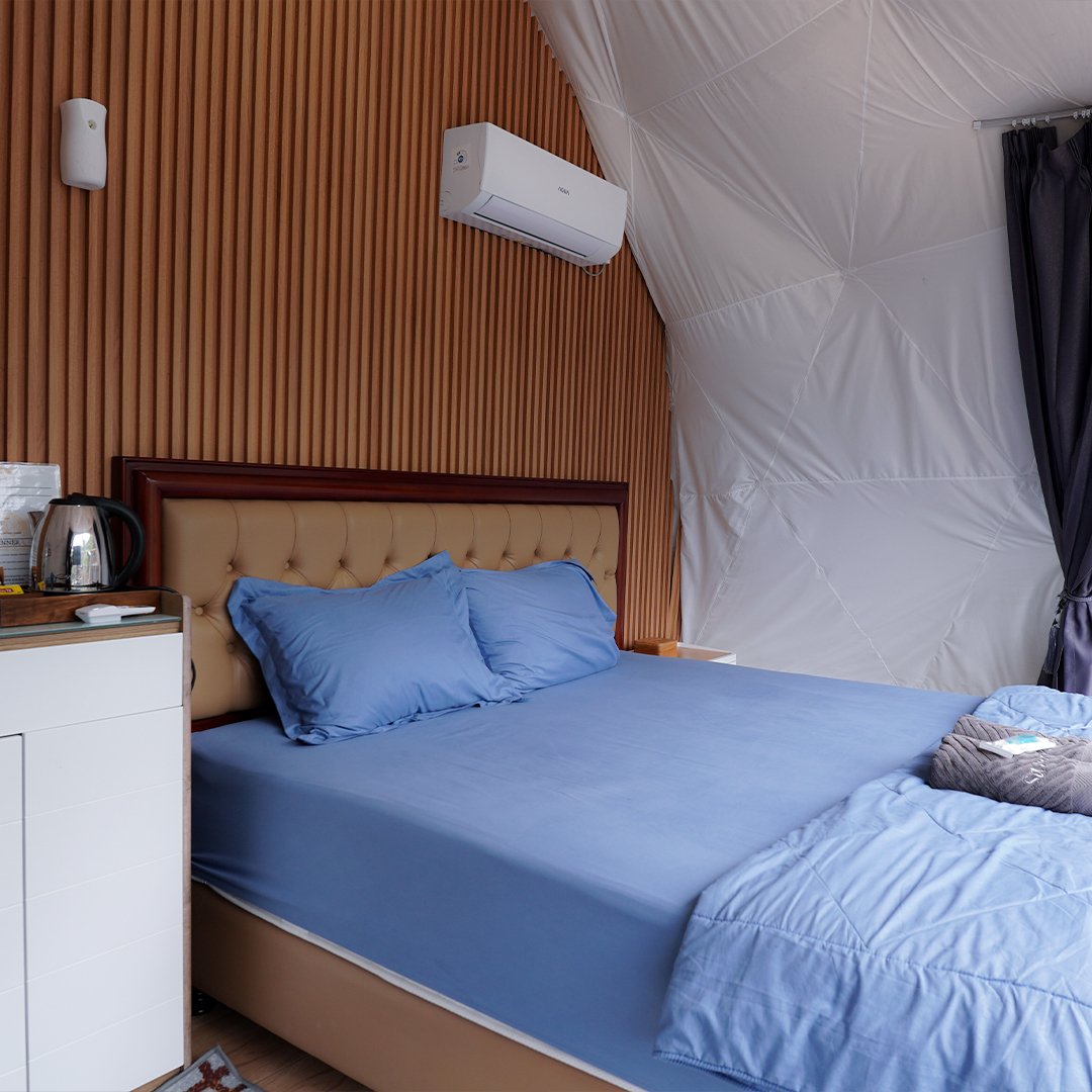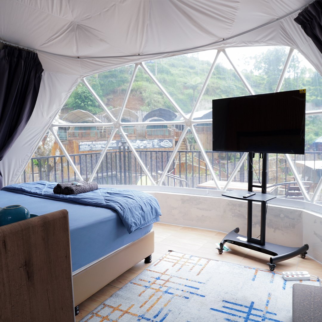 Tipe Dome 2 glamping ini Menghadirkan panorama sungai yang luas langsung dari depan kamar, dome ini menjadi pilihan favorit untuk pasangan. Desain interior yang hangat dan pencahayaan natural menciptakan pengalaman menginap yang romantis. Ideal untuk tamu yang ingin glamping mewah dengan view sungai terbaik.