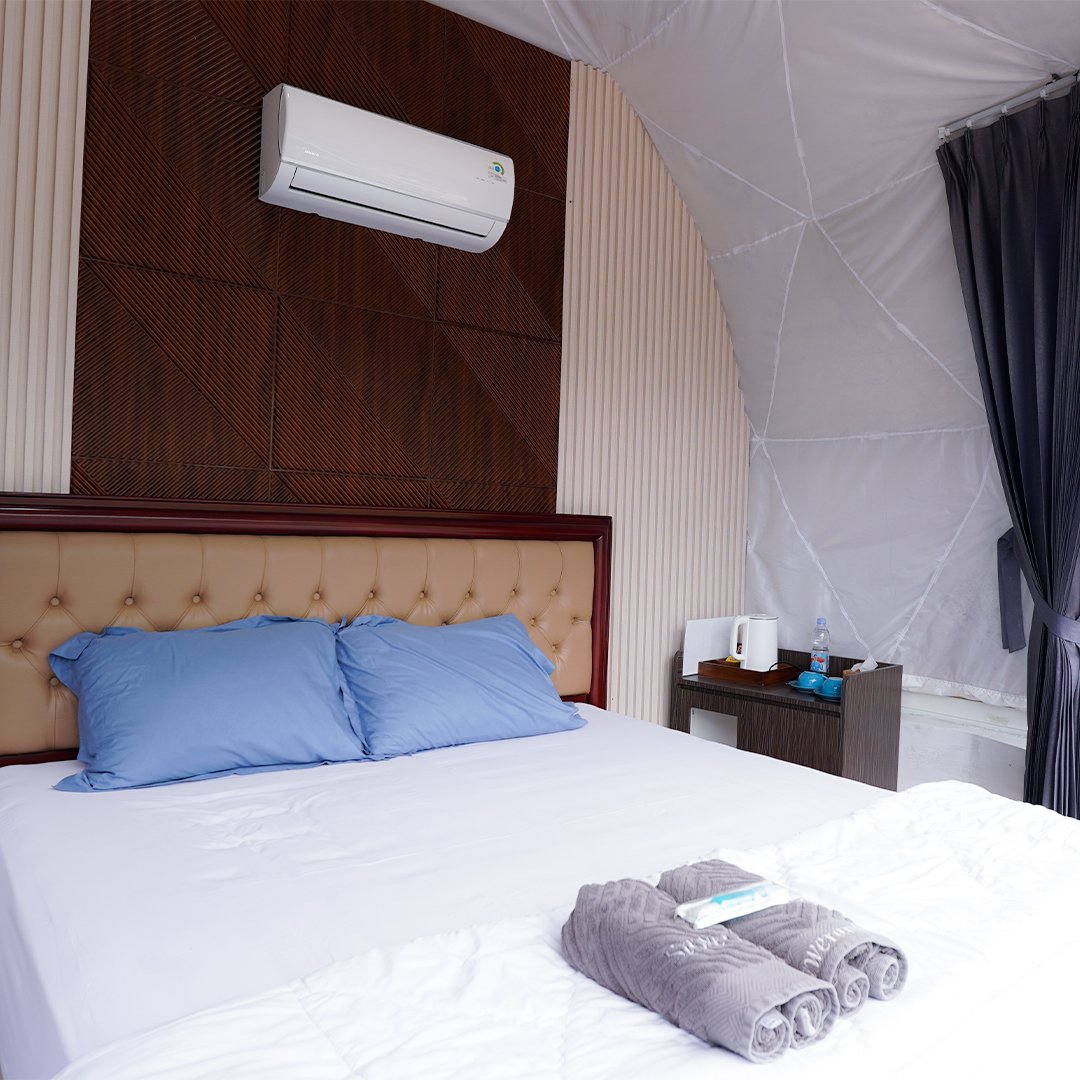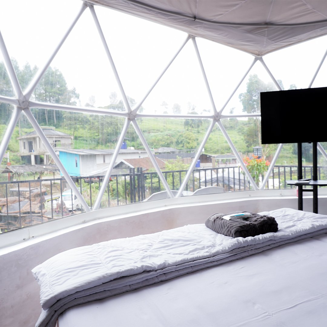 Tipe Dome 6 glamping ini dilengkapi panorama kebun teh yang tampak langsung dari depan kamar, dome ini menghadirkan udara segar dan sunrise yang memukau. Sangat ideal bagi traveler yang mencari glamping dekat kebun teh dengan suasana alam pegunungan yang sejuk.