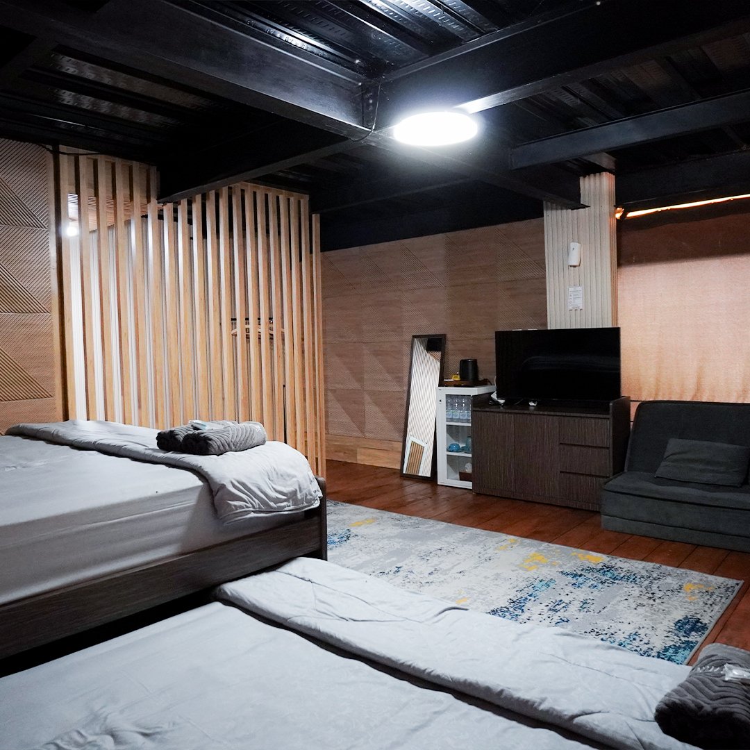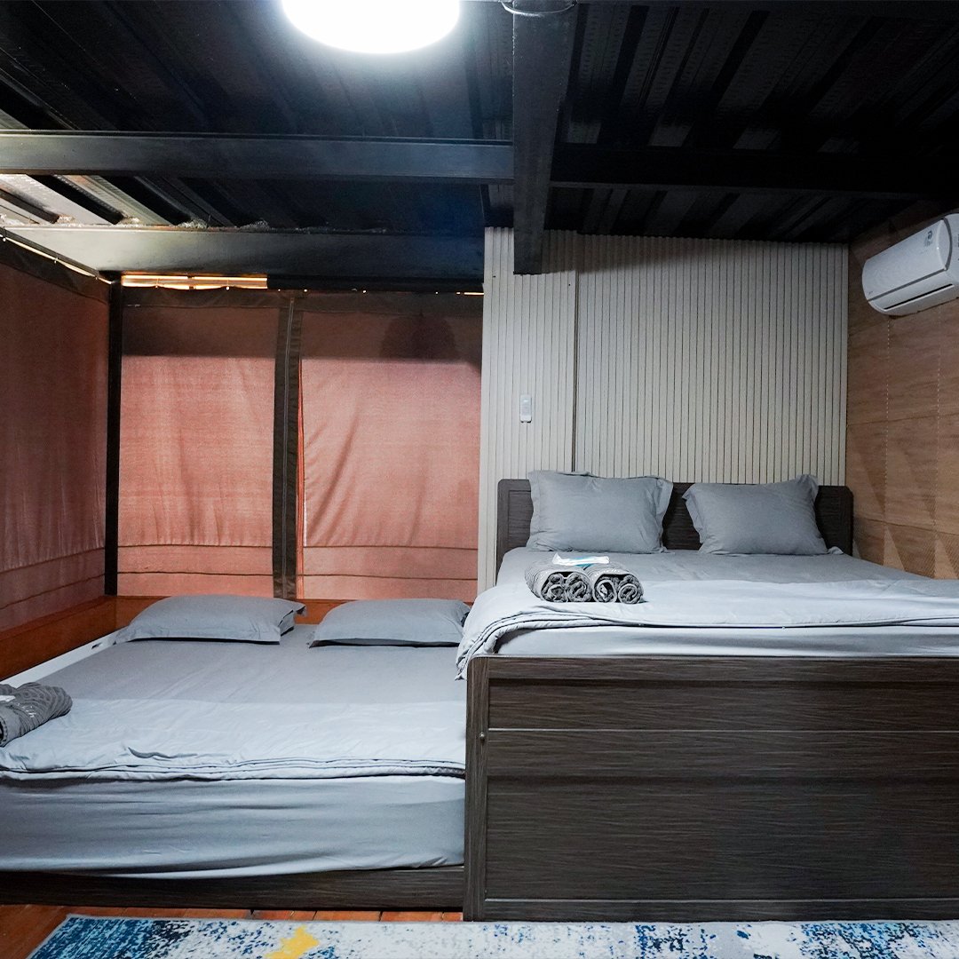 Tipe Tent 4 Merupakan Kamar nyaman dengan pemandangan taman sederhana yang asri. Dilengkapi area BBQ pribadi, tamu bisa menikmati suasana santai sambil memanggang bersama keluarga atau teman. Cocok untuk liburan ringan dengan nuansa outdoor yang hangat.